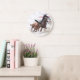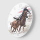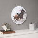 A horse and rider cutting a calf at a competition, with a digital painting effect, on a clock with shadowed white Roman numerals.