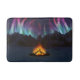 In a snow-covered valley on a frosty night in the dead of winter a bonfire leaps up to mirror the northern lights filling the sky above the distant mountains.