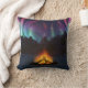 In a snow-covered valley on a frosty night in the dead of winter a bonfire leaps up to mirror the northern lights filling the sky above the distant mountains.