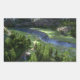 A winding path leads over the mountains to a solitary river valley. It crosses the rocky stream over a line of stepping stones and ends at a lonely house nestled under the trees at the foot of the hills. The mountain meadow is filled with the green grass and patches of blue and pink flowers. The overshadowing peaks are still covered with snow on this spring morning.