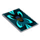 Bold Color Contrast: The interplay between cyan and black creates a dramatic effect that captures attention.