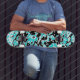 Cyan and Black Swirls Skateboard