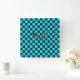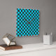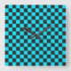 A checkerboard pattern with alternating black and cyan squares. The repeating geometric design creates a balanced, rhythmic visual effect.