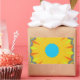 Central Area: At the heart of the piece is a light blue/cyan circle, surrounded by a warm golden yellow, creating a radiant focal point.