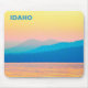 An intensely gold and pink sunset at on Lake Pend Oreille (Sandoint, ID), with the surrounding mountains being various shades of blue. The waters of the lake are also golden. The intense colours were the result of drifting smoke from forest fires in eastern Washington. In addition to the salmon pink colour in the sky, the lake is inhabited by Kokanee, a landlocked Sockeye Salmon (Oncorhynchus nerka). Customisable text reading "IDAHO" also appears.