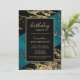 Cyan Marble Shiny Gold Foil Paint Texture Birthday Invitation