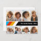 Front - 8 Photo template in a simple grid with a white border. A fun, retro stripe pattern with red, gold and blue on a black background. and a simple font make a modern, minimal design to send to friends.