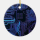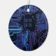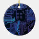 Cyber Blue PCB Circuit Board Trace Pattern Art Ceramic Tree Decoration