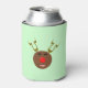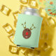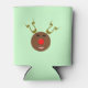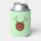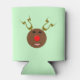 This awesome can cooler features a funny cartoon of a Reindeer. He has beady black eyes and a huge bright red glowing nose. The antlers are pointing up and look futuristic making this reindeer a cyber reindeer. He is still cute and friendly though.