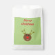 This awesome pack of 50 favour bags features a funny cartoon of a Reindeer. He has beady black eyes and a huge bright red glowing nose. The antlers are pointing up and look futuristic making this reindeer a cyber reindeer. He is still cute and friendly though. There is customisable text at the top of the bags so you can personalise them with a message of your choice.