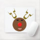This fun festive mousepad features a funny cartoon of a Reindeer. He has beady black eyes and a huge bright red glowing nose. The antlers are pointing up and look futuristic making this reindeer a cyber reindeer. He is still cute and friendly though.