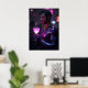 A mysterious figure holding a glowing chalice amidst purple neon mist, representing digital hedonism.