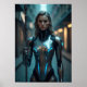 A youthfully styled Hermes featuring cybernetic neck augmentations for rapid data transfer across the cosmos.