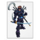 An original video game inspired illustration of a furturistic cyberpunk, ninja action hero! He's wearing a purple exoskeleton suit armor and wields a Murasame kitana amongst other weapons. This unique design was made specifically for Zazzle, featuring professional digital artwork and can be fully customized to add additional photos and text to suit. It would be ideal for videogame admirers, comic book fans,anime lovers and anyone interested in manga based art, or would make a great gift for those interested in receiving a cool, edgy, urban, cartoony product for their birthday, or other occasion. This exclusive design is not available in other stores!