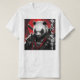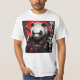 "Cyber Samurai" T-Shirt. A dramatic, high-contrast black-and-white photograph of a cyberpanda samurai taken in extreme close-up showcases the powerful features of this majestic creature against a dark, muted background that evokes intensity, power, and wild beauty. The fierce panda warrior stands before a large red sun. The atmosphere is painterly and cinematic. The overall style is detailed, restrained, and dramatic, with a muted colour palette: concept art, digital painting.