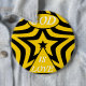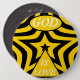 Colossal Round Button: Cyber Yellow & Black Star "God Is Love" - Bold Statement Pin | Achempong.