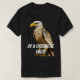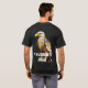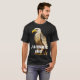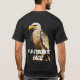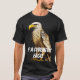 The t-shirt design features a striking cybernetic eagle, blending nature and technology in a futuristic style. The eagle's wings are a fusion of sleek metal and feathers, with intricate mechanical details like gears and circuits embedded throughout its body. Its eyes glow with a neon blue light, giving it a powerful and vigilant look. The design emphasises sharp angles and a metallic sheen, contrasting with organic curves to create a dynamic, robotic appearance. The background is minimal, keeping the focus on the eagle's imposing, tech-enhanced presence.