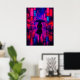 Cyberpunk City Night with Neon Lights and Umbrella Poster