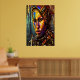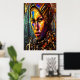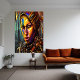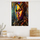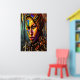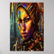 A young cyberpunk female warrior with yellow eyes and colourful painting in her face. This is a AI generated art.