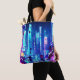 AI generated image of a cyberpunk city with futuristic tall buildings and blue/pink neon lights. It's a digital concept Art with sharp details and bright colours.