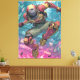 Feel the rush with this explosive cyberpunk illustration: a powerful red-and-gold mecha exosuit pilot launches through a chaotic neon-lit metropolis, surrounded by glowing skyscrapers, holographic chaos, and electric pink-teal energy. Detailed armor, dynamic motion, and vibrant comic-book style make this a perfect statement piece for gamers, anime fans, sci-fi enthusiasts, or modern teen/young adult rooms. High-resolution digital print.