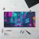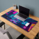 Cyberpunk Neon City Gamer Desk Setup Mat