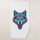Cyberpunk Neon Wolf - Synthwave Robotic Animal Bath Towel Set
