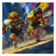 Cyberpunk Runners Sprint Neon Rain City Action Art Poster