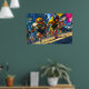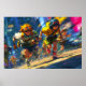 Cyberpunk Runners Sprint Neon Rain City Action Art Poster