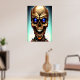 Golden coloured cyborg skull with deep blue eyes. This is a AI generated art.