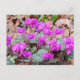 Postcard with photo of cyclamen coum plants with pink flowers and circular leaves