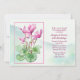 A lovely invitation featuring a pink cyclamen plant in bloom. A sea foam abstract design makes a beautiful backdrop.