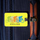 Cycling Design Luggage Tags with bright yellow background for easy identification and customisable personalisation.