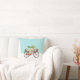 Cute cartoon dog wearing a green striped winter hat and long scarf and pedaling a red bicycle. Cheerful red squirrel is riding in the bike basket. These two are on their way to deliver Christmas presents to friends. This whimsical decorative pillow will add some holiday cheer to your sofa or bed. Makes a wonderful Christmas gift for animal lovers. Check out Jenn’s Doodle World for even more fun animal art and seasonal home decor.