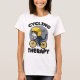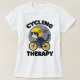 bicycle rider cat illustration with a funny cycling saying "cycling is my therapy" for biking lovers