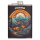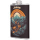 Cycling Life, retro painting in orange and blue of a cyclist riding through the mountains and forest with the sun in the background