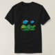 I give wanted to give this a 4 instead of a 5 because these Basic DARK T0shirts run unexpectedly SLIM or Narrow. Which is great if you do not have a potbelly, but I have a paunch. It isn't the shirt's fault that I've got a beer belly. The design and shirt itself is a quality cotton shirt. The color is more of a deep purple, but still a very pretty color. The Basic DARK T-shirts run a bit SLIMMER than the Basic Ts. The neck is a fraction narrower (or seems to be narrower) also. I'm a paunchy middle-aged woman and my neck is 12 inches (31cm) thick and the neckline fell about the same as in the photo of the man, and I had the desire to tug it a bit. So if you're a thick necked man or like loose shirts, be aware these are slimmer shirts. Once I get rid of my lockdown paunch it'll look great. The shirt washed well in cold water with no apparent bleeding. We don't have a dryer, so it hung dry. Did not shrink. Love the colors and the design. The design looks smaller on my shirt than it does on the model on-line. But still, it looks good on the shirt. The printing looks as it does on the model, just the size seems fractionally smaller. Washed garment in cold water, hung dry and design appeared unaffected.