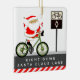 Easy-to-personalise Christmas keepsake for your favourite cyclist, featuring Santa riding a bike. Edit text to add biker's name.