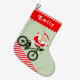 Fun cycling Christmas stocking holiday gift featuring Mrs. Claus cyclist for your favourite biker.
