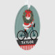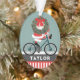 Creative cycling Christmas ornament holiday gift with cartoon Santa bike riding. Edit text to easily customise by adding name of your favourite cyclist.