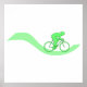 A simple cycling theme design in green, featuring a cyclist riding a bicycle in a road race.