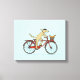 Cycling Dog and Squirrel Canvas Print. Cute cartoon dog wearing a beret pedaling a red bicycle. Happy squirrel is riding in the bike basket. A fun art print for cyclists and animal lovers. Visit Jenn’s Doodle World for even more charming designs printed on products that make fun gifts for every occasion. ©Jenn Inashvili