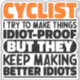 Funny Cyclist Sayings "Cyclist I Try To Make Things Idiot Proof But They Keep Making Better Idiots". Grab this Funny Cyclist design as a funny gifts for an awesome mum, dad or friend.