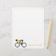 Cyclist riding his bicycle flyer displaying a minimalist icon of a black cycling silhouette wearing yellow top and your text on white background.