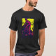 I give wanted to give this a 4 instead of a 5 because these Basic DARK T0shirts run unexpectedly SLIM or Narrow. Which is great if you do not have a potbelly, but I have a paunch. It isn't the shirt's fault that I've got a beer belly. The design and shirt itself is a quality cotton shirt. The color is more of a deep purple, but still a very pretty color. The Basic DARK T-shirts run a bit SLIMMER than the Basic Ts. The neck is a fraction narrower (or seems to be narrower) also. I'm a paunchy middle-aged woman and my neck is 12 inches (31cm) thick and the neckline fell about the same as in the photo of the man, and I had the desire to tug it a bit. So if you're a thick necked man or like loose shirts, be aware these are slimmer shirts. Once I get rid of my lockdown paunch it'll look great. The shirt washed well in cold water with no apparent bleeding. We don't have a dryer, so it hung dry. Did not shrink. Love the colors and the design. The design looks smaller on my shirt than it does on the model on-line. But still, it looks good on the shirt. The printing looks as it does on the model, just the size seems fractionally smaller. Washed garment in cold water, hung dry and design appeared unaffected.