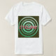 This white mens wear shirt has cyclone imagery that uses green circles to fade into the distance.