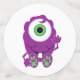 Happy purple cyclops monster on one side, eyeball on the other side. A fun table dressing for your youngster's Halloween party or monster themed birthday party.