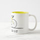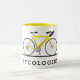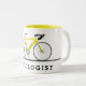 Cycologist text and yellow bicycle Two-Tone coffee mug