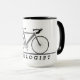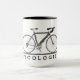 Cycologist in white text on black with dark grey bicycle on grey line.