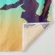 Tapestry in a Japanese inspired silhouette of a cypress tree, framing a full moon, against an aqua and coral orange sky